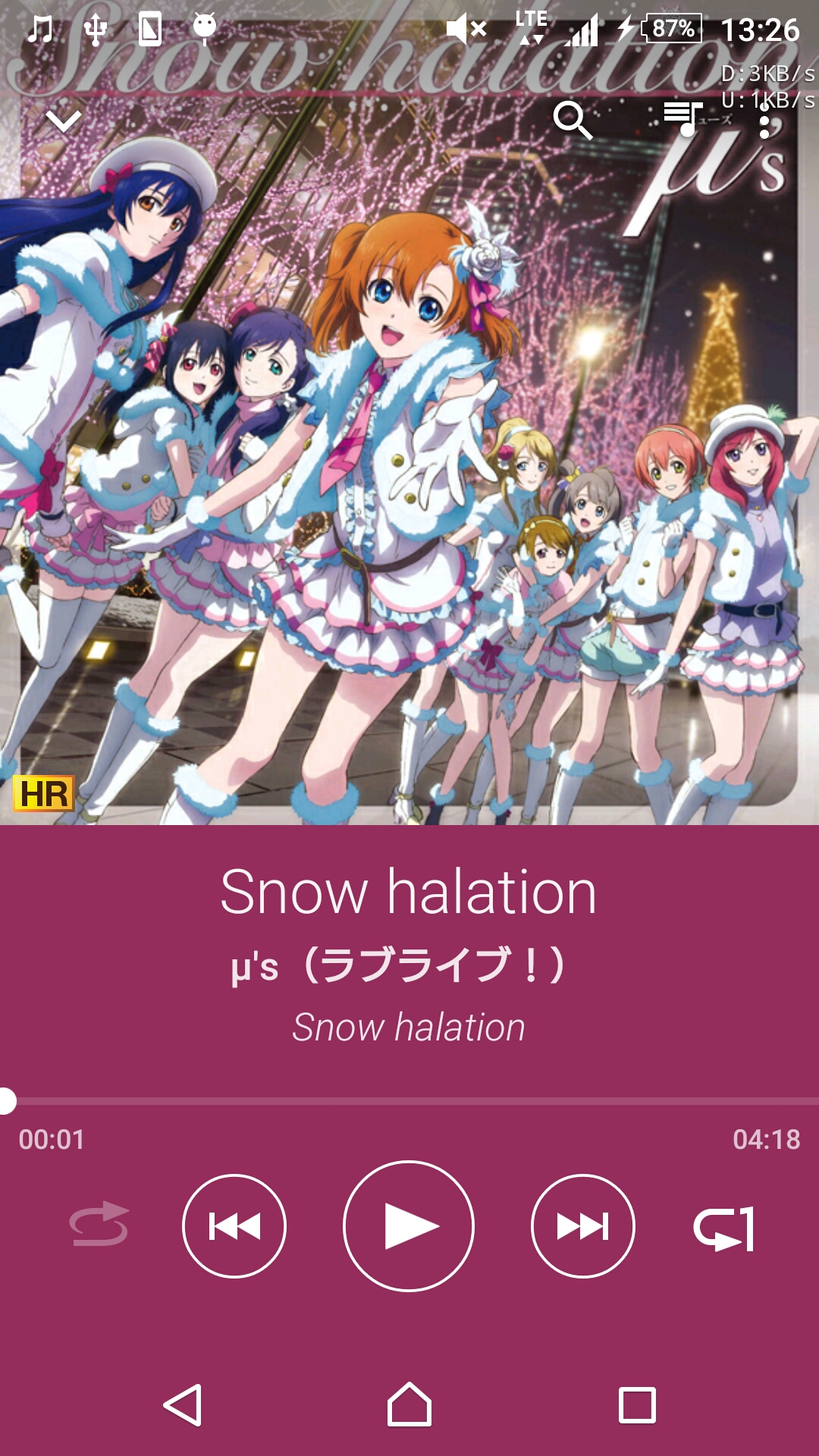 ご覧の通り、ソニーのミュージック(旧Walkman)アプリで「HR」というマークが付く。同様にMedia goでもこのマークが表示される。