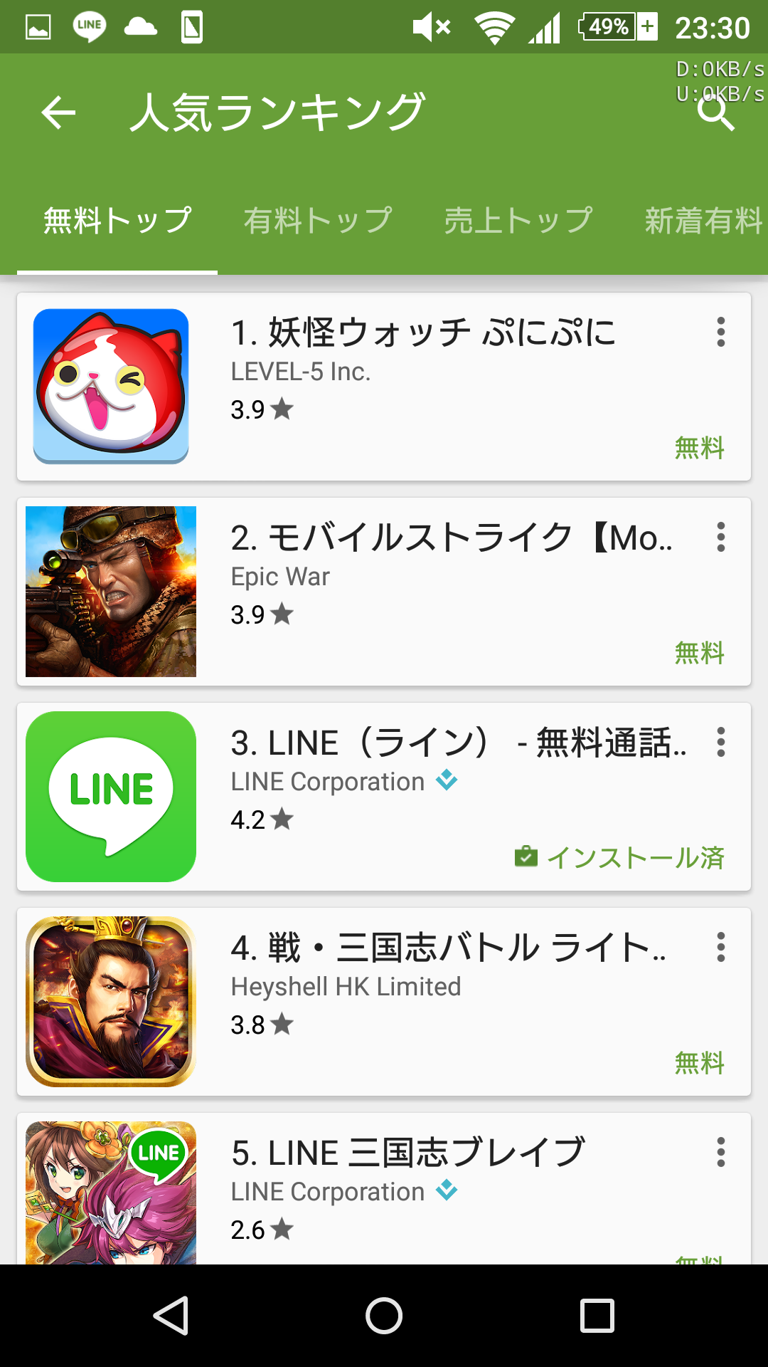 まあそれはいいとして。いつも通り人気のアプリの変動をチェックするのにスワイプして…あれ?