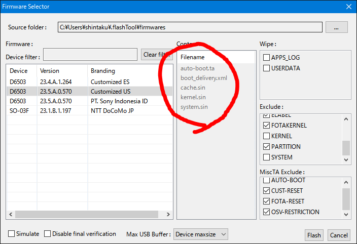 また、上記情報も込みで、最新flashtoolの使い方の記事もいつか作成していただけると幸いです。