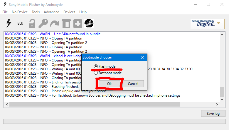 念のため改めて以下の条件でやってみました。(OS:Windows10、Flashtool 0.9.23.2)