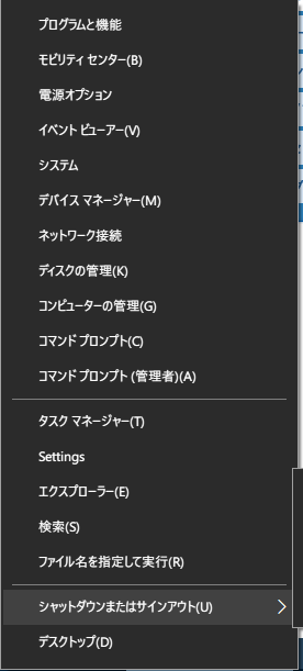 以下の画像のように、Windows 10 Insider Preview Build 14946以降では、スタートボタン右クリックした時(もしくはWin+Xを押した時)のメニューに以前まで存在していた「コントロール パネル」が無くなった代わりに「Settings」(正式になる頃には「設定」になるでしょう)に置き換わりました。