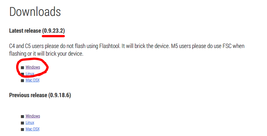 flashtoolのページには、1世代前の0.9.18.6も表示されており、